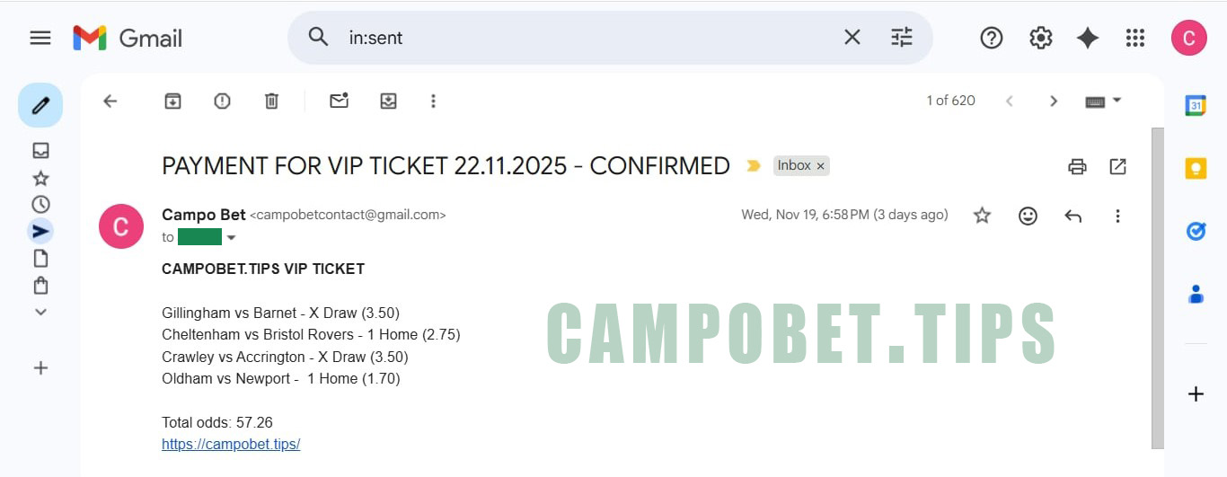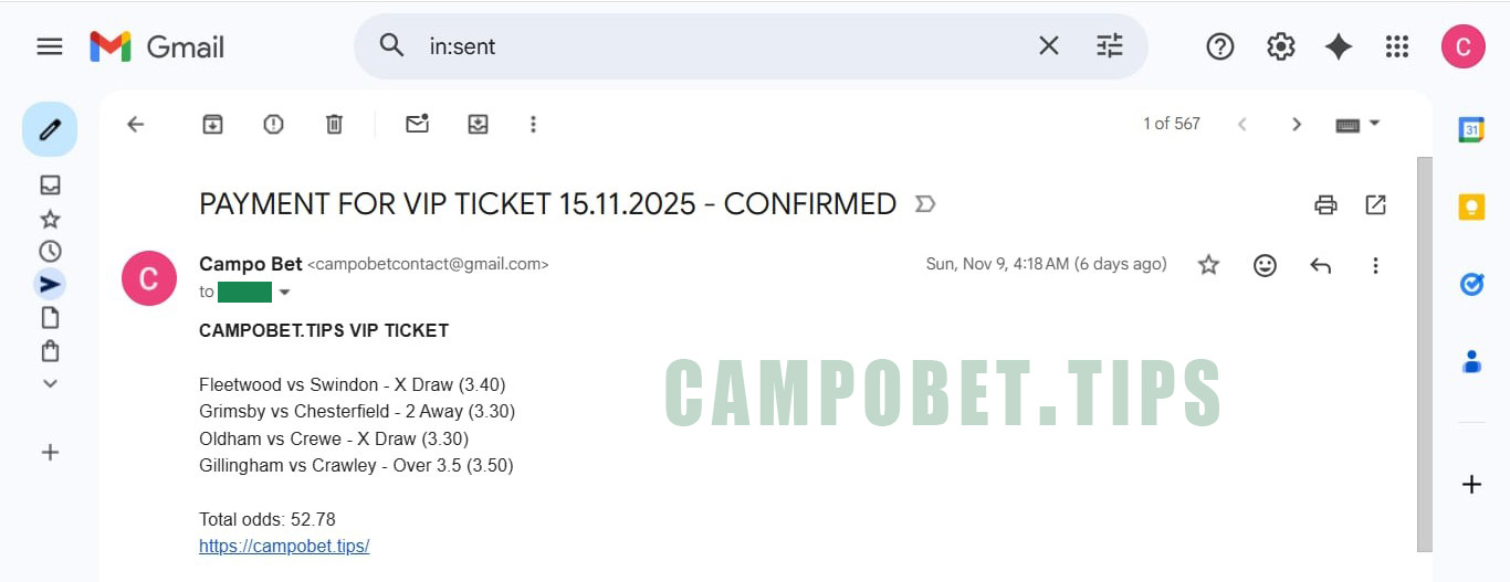 | 15.11.2025 | Gillingham – Crawley | Over 3.5 | 3.50 | 2:2 Won |