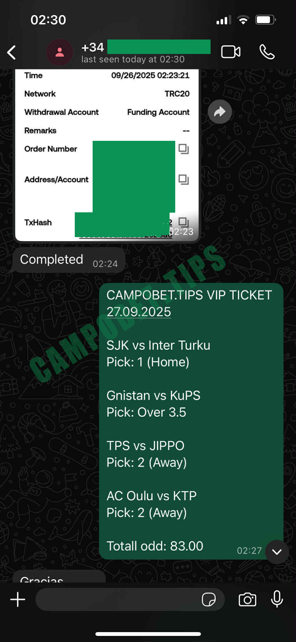 | 27.09.2025 | TPS – JIPPO | 2 (Away) | 3.05 | 0:1 Won |