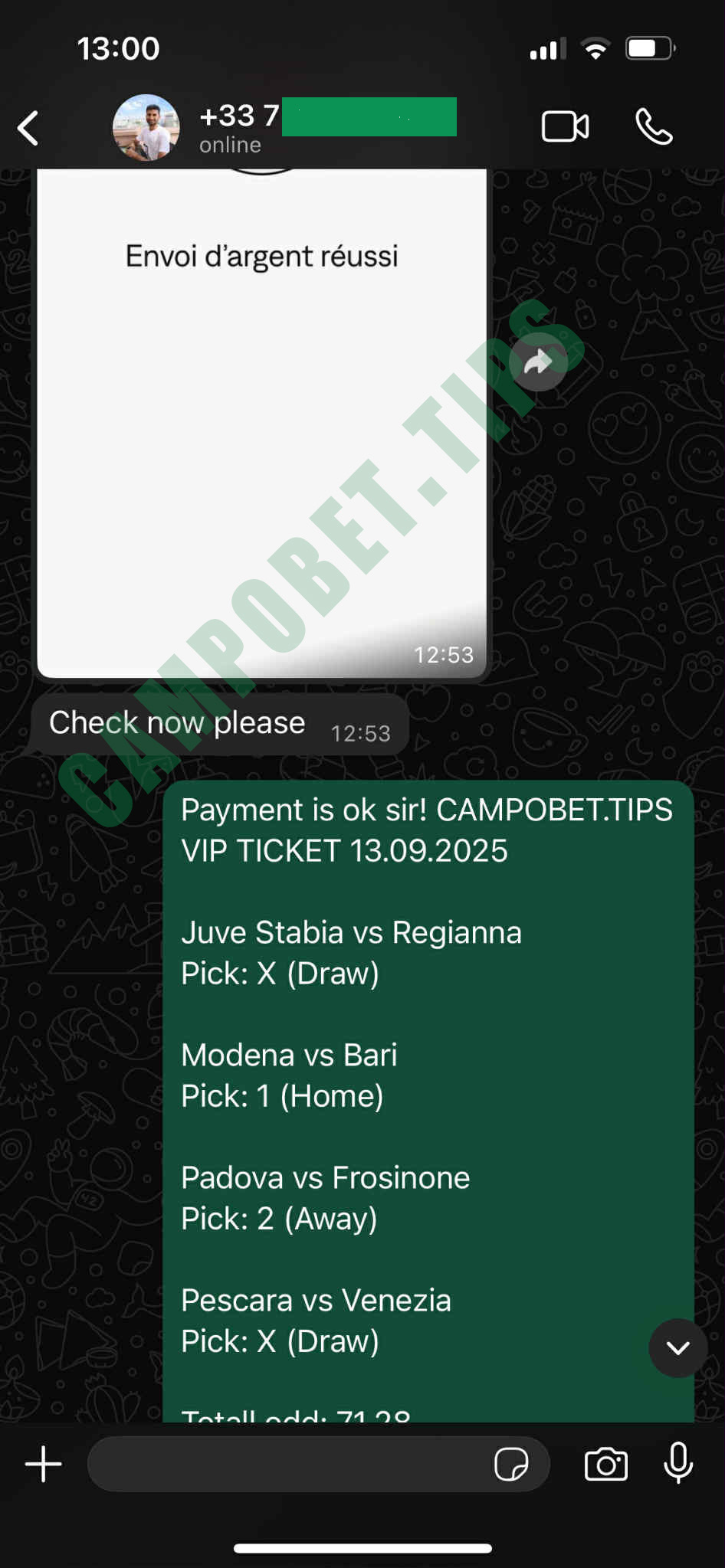 | 13.09.2025 | Juve Stabia – Reggiana | X (Draw) | 3.20 | 0:0 Won |