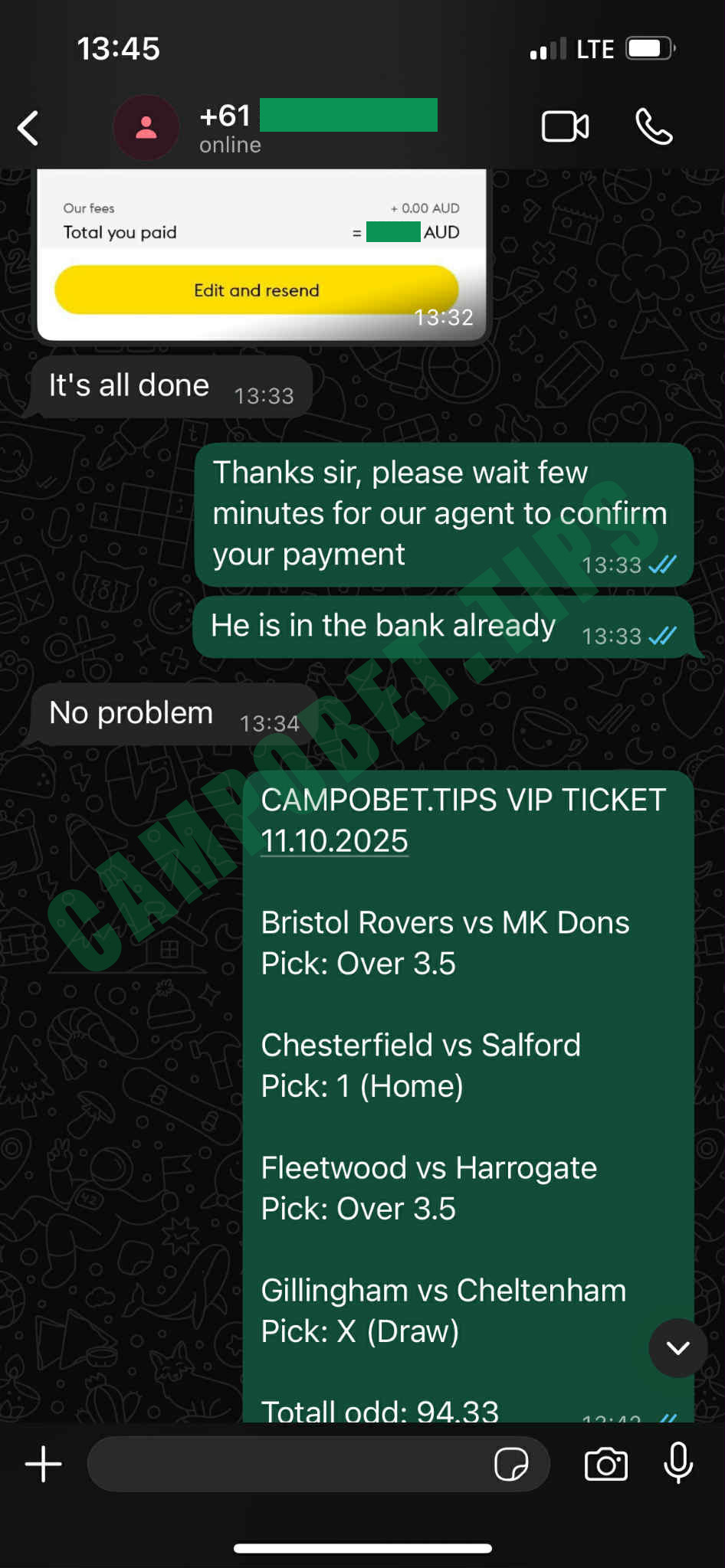 | 11.10.2025 | Fleetwood – Harrogate | Over 3.5 | 3.25 | 3:2 Won |