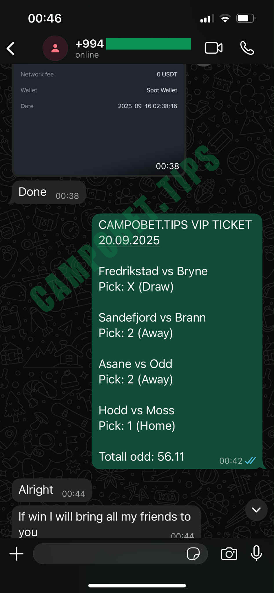 | 20.09.2025 | Asane – Odd | 2 (Away) | 2.90 | 0:2 Won |