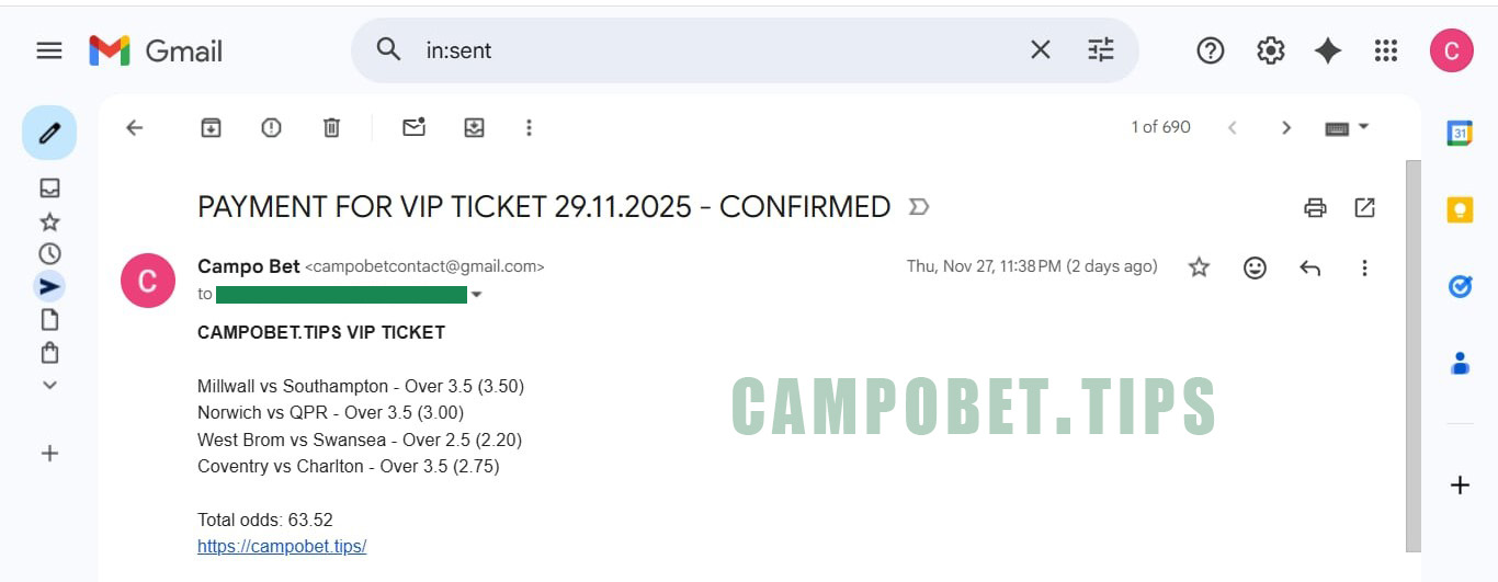 | 29.11.2025 | Millwall – Southampton | Over 3.5 | 3.50 | 3:2 Won |