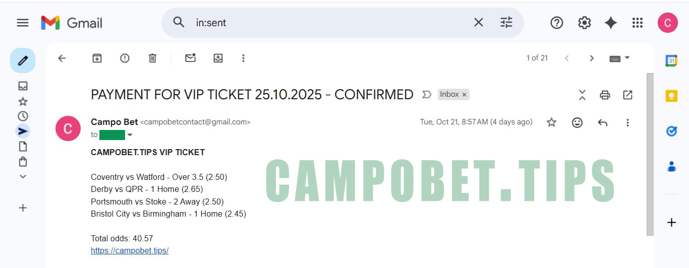 | 25.10.2025 | Coventry – Watford | Over 3.5 | 2.50 | 3:1 Won |