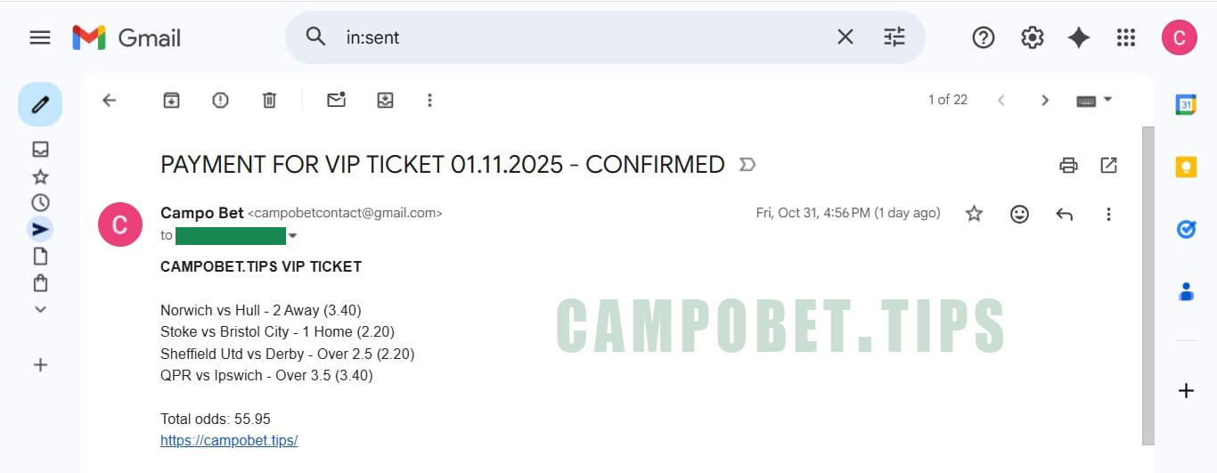 | 01.11.2025 | Stoke – Bristol City | 1 (Home) | 2.20 | 5:1 Won |